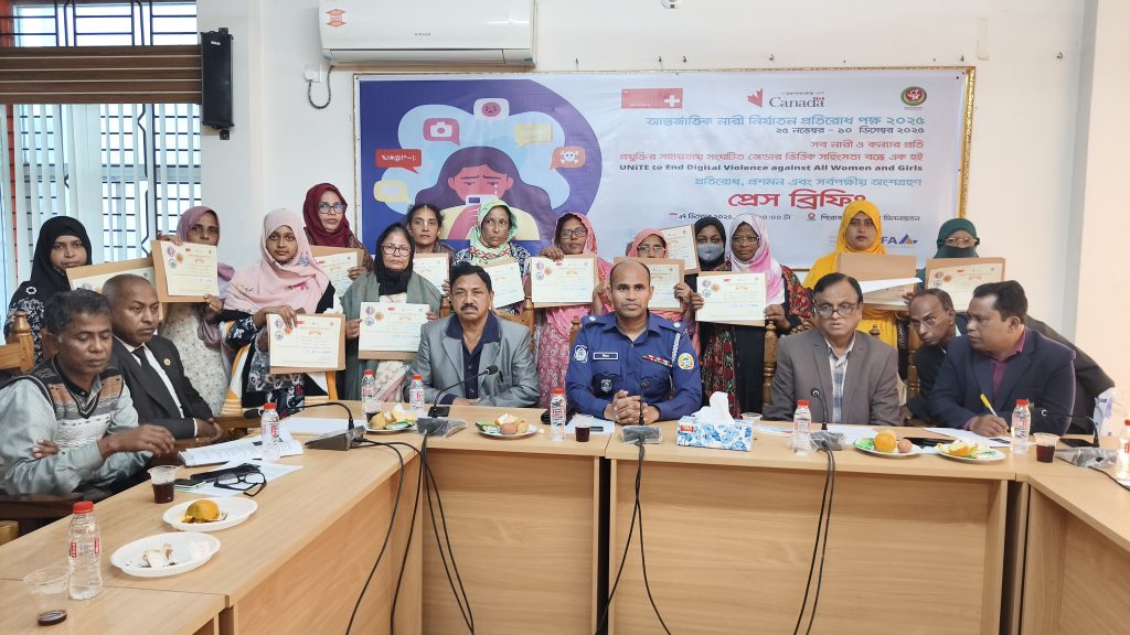 পিরোজপুরে নারী ও কন্যার প্রতি প্রযুক্তির জেন্ডার ভিত্তিক সহিংসতা প্রতিরোধে প্রেস ব্রিফিং