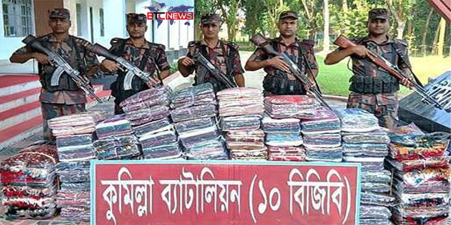 কুমিল্লায় কোটি টাকার ভারতীয় পোশাক সামগ্রী-মোবাইল ডিসপ্লে জব্দ