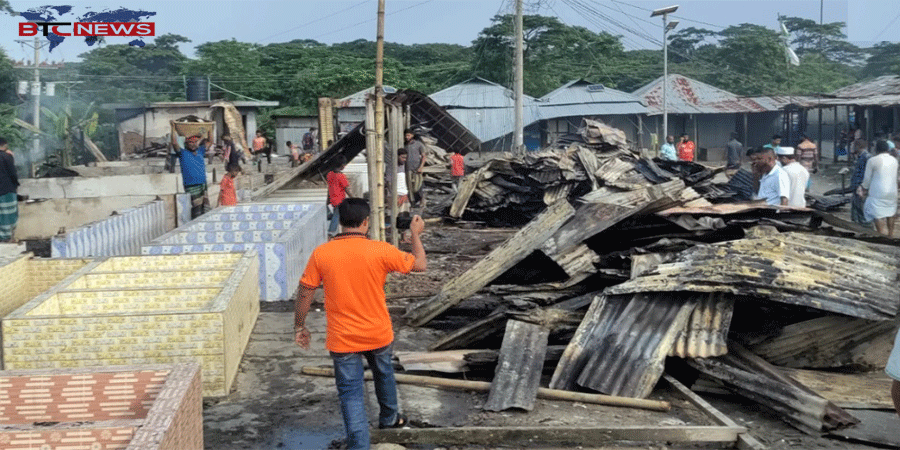 বোয়ালমারীতে বাজারে ভয়াবহ আগুন, পুড়ল ১৭টি দোকান