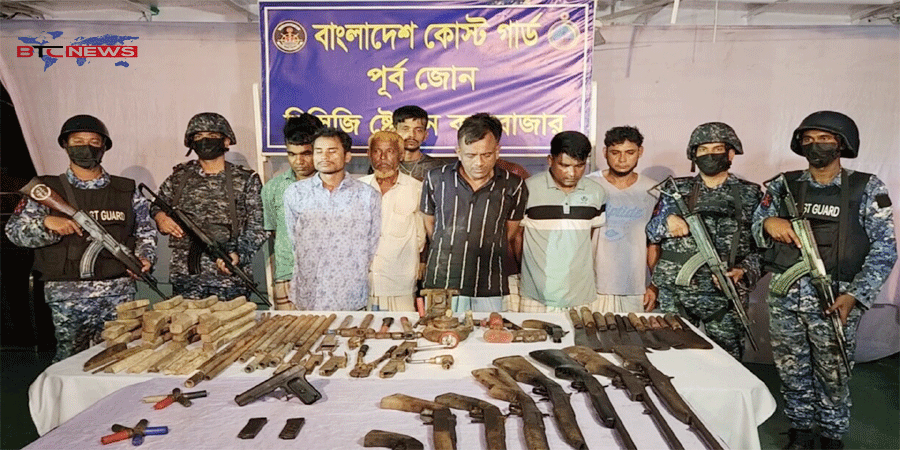 কক্সবাজারে বিপুল পরিমাণ অস্ত্র-গোলাবারুদসহ জিয়া বাহিনীর ৯ সদস্য আটক